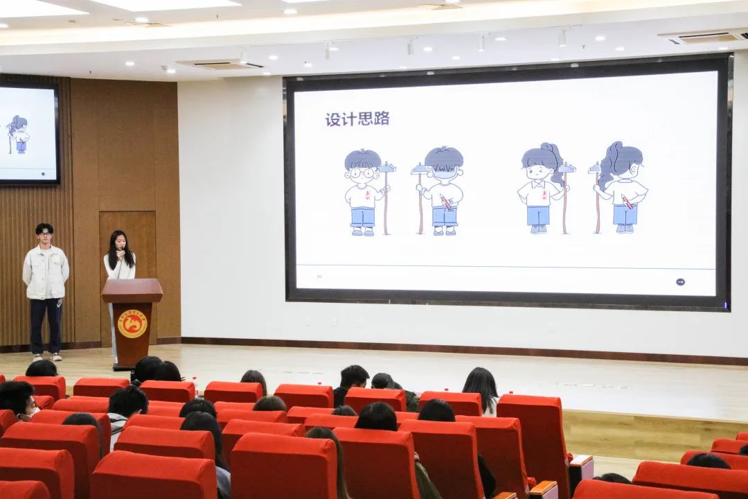 在主赛道的角逐中,参赛选手逐一介绍了自己作品的创作过程,解读各自作品的创作理念,他们将作品与学院生活相结合,设计出了独具特色的钥匙扣和文件夹,用作品表达对劳经精神的理解,用作品传递对劳经情怀的传承。