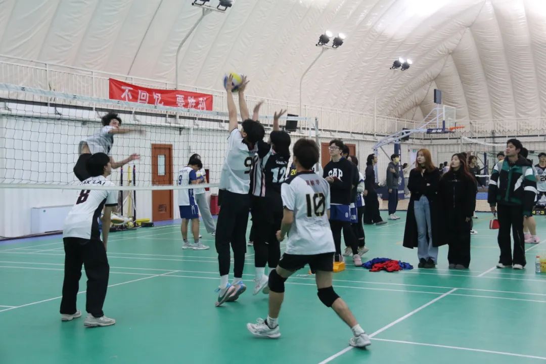 12月5日晚八点,气膜馆人声鼎沸。加油声、助威声、喝彩声交织成一片,将整个场馆的热烈气氛推向高潮。劳经一队开局选择稳扎稳打,几个来回后,渐入佳境。劳经队员默契配合,各具特色的发球,来势汹汹的进攻以及铜墙铁壁般的防守,使双方比分差逐渐拉开,劳经胜利在望!第二局队员们超常发挥,展现出强劲实力,连续几球得分,锐不可当。场下劳经学子表现出强烈的热情,震耳欲聋的加油声响彻场馆,在场的所有人都深切感受到属于劳经人的热血气魄。最后,队长刘恋得分带领劳经学院排球队获得本场比赛的胜利,最终取得本次大赛的冠军。