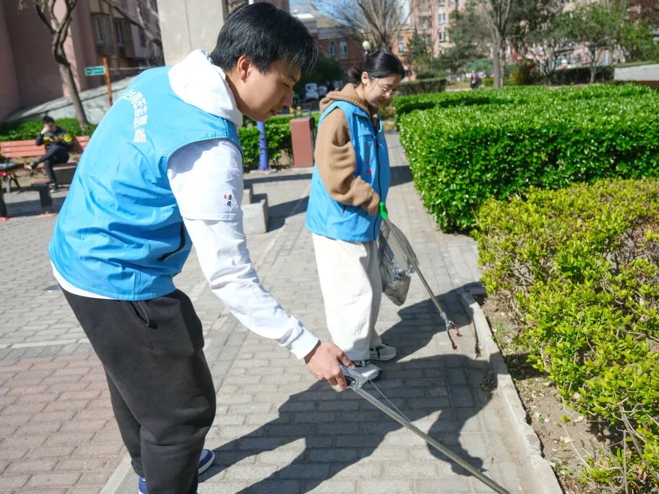 4月8日清晨,志愿者们准时于学校南门集合,共同前往芳菲路社区。志愿者共分为“宣讲组”与“环卫组”两批,同时开展室内讲解与室外环保创城活动。环卫组的志愿者们利用芳菲路社区提供的垃圾收集工具采集社区路面与边角处的垃圾,一次次弯腰夹起烟头、果壳、废弃纸屑等,着重清除社区内暴露垃圾,同时细致检查细微之处的“落网之鱼”,以实际行动助力文明创城工作。