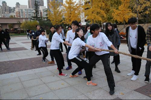 在传递同心鼓比赛中,各班级同学相互配合,互帮互助,感悟团结精神,体味班级力量。在拔河项目中,同学们肩负班级荣誉感,使出浑身解数,夺取班级胜利。赛场上不时充斥着加油声、呐喊声。活动最后,为各班发放了校园寻宝任务卡,鼓励学生进一步了解首经贸的一草一木、一屋一隅,激发学生爱校爱院情节。