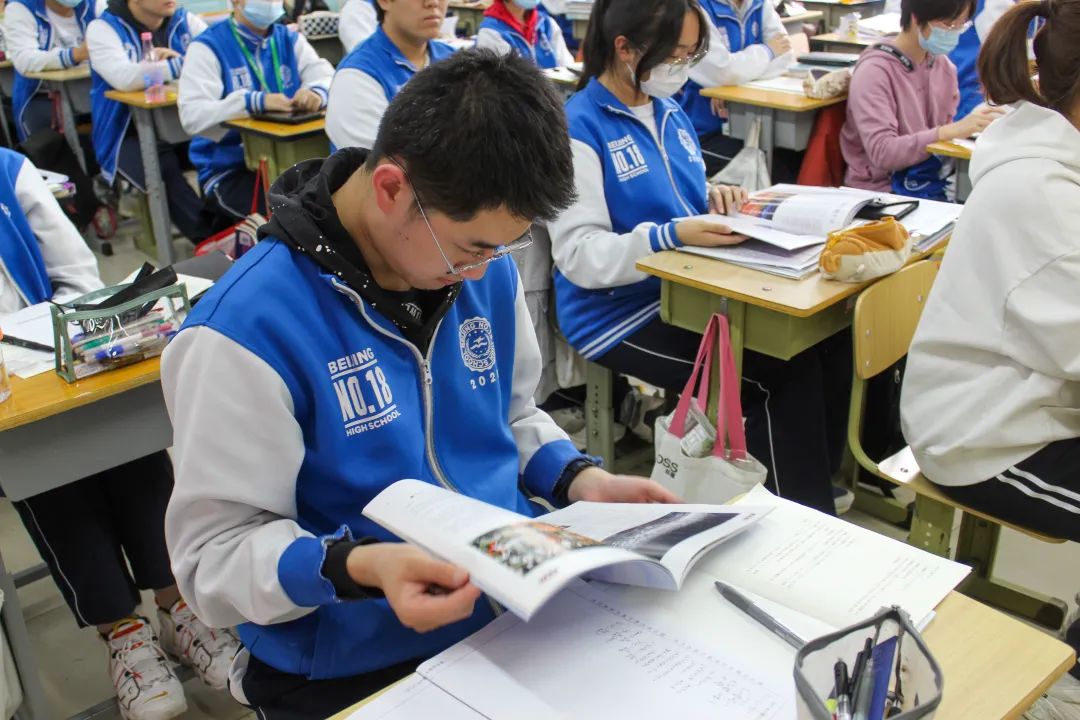 北京市第十八中高三年级主任甄兆敏、高三四班班主任井雪,蜜桃视频 分团委副书记(主持工作)、兼职辅导员韩国晟,22级劳经班团支部书记刘芳利、文体委员战墨菡及高三四班全体同学参与活动。