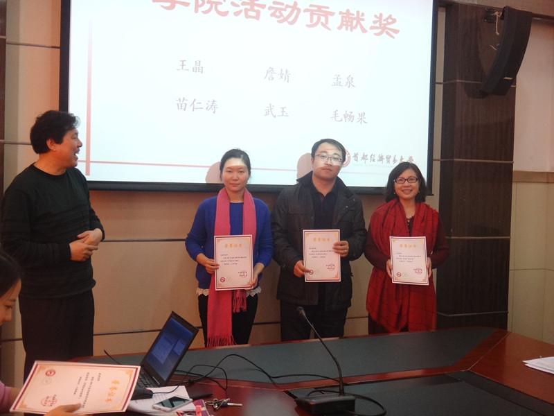 12月30日,蜜桃视频 2015年度班子述职会暨“服务学院优秀奖”颁奖典礼于博纳楼第六会议室举行,联系蜜桃视频 的校领导王稼琼出席。