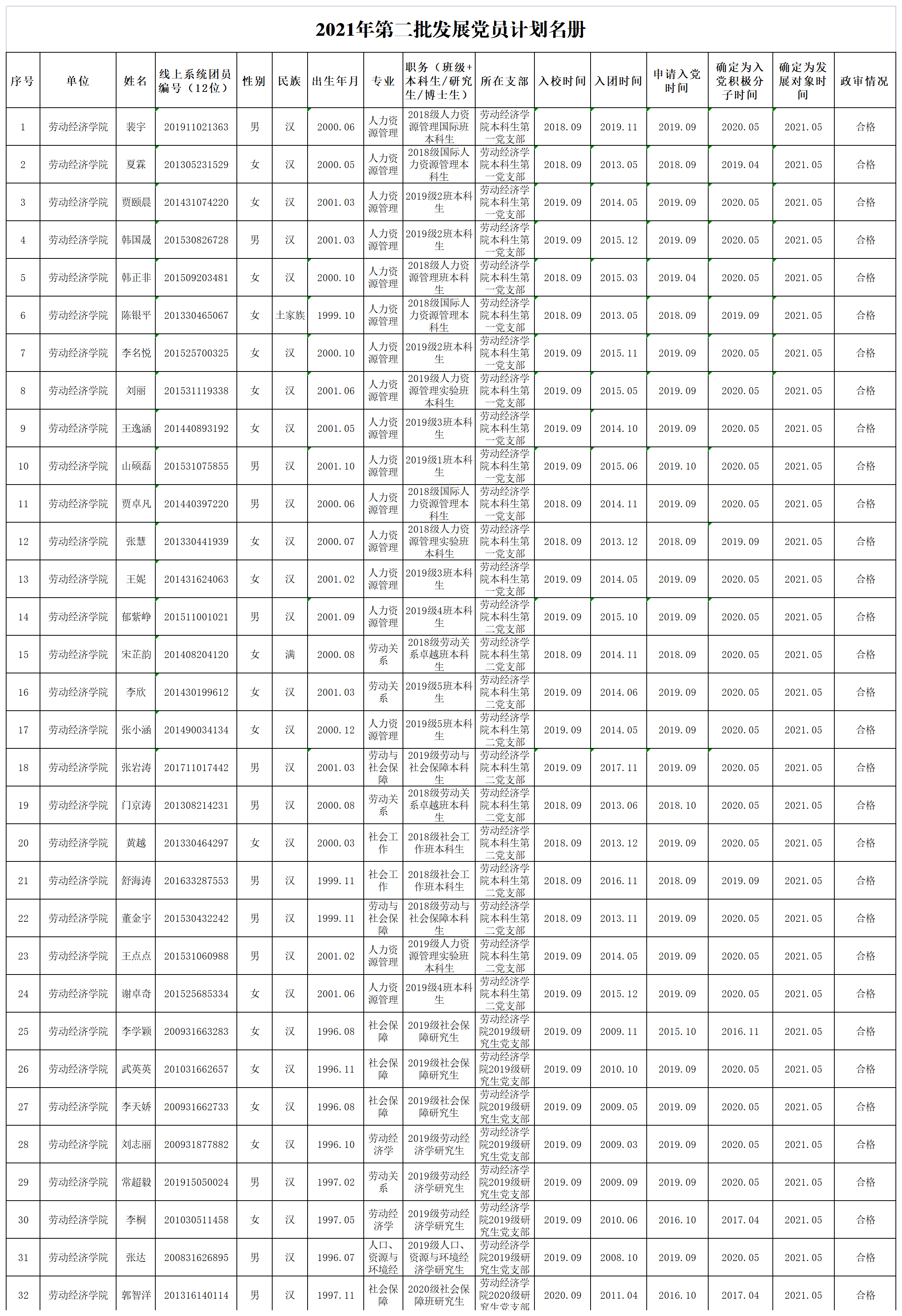 根据我院发展党员公示制的有关规定,经蜜桃视频 学生党支部研究,蜜桃视频 党委审查和讨论,现将拟接收的2021年第二期中共预备党员名单予以公示。