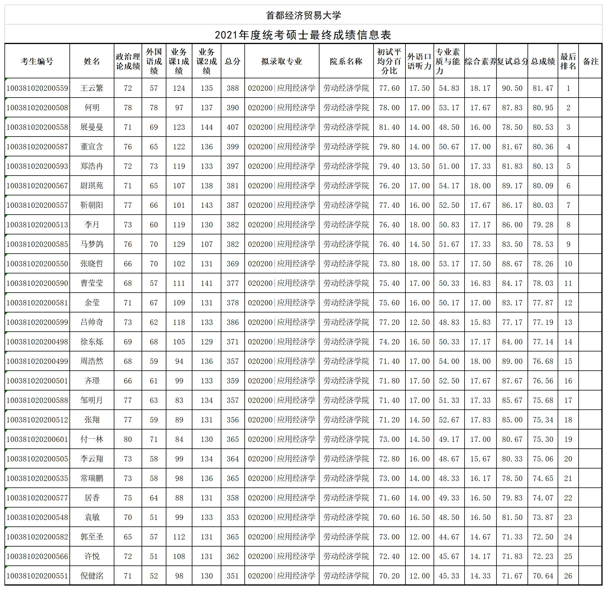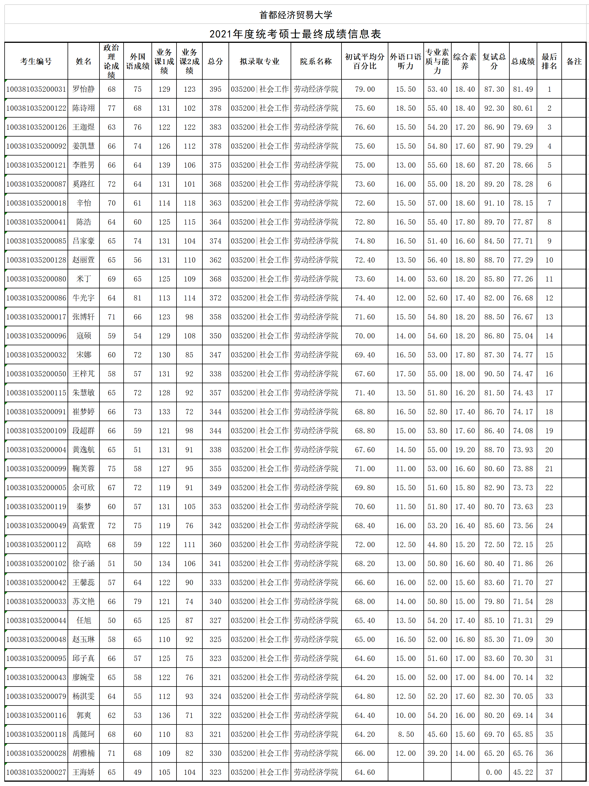 【公示】首经贸蜜桃视频 2021年度统考硕士最终成绩公示